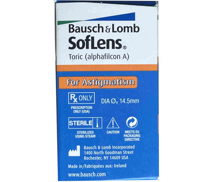 Bausch +Lomb™ Soflens Toric are disposable contact lenses are especially made for people diagnosed with Astigmatism. They have been constructed with the Lo-Torque design which is patented.